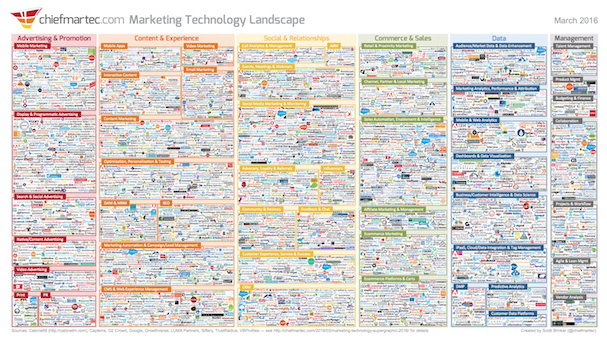 Believe it or not, in these marketing tools infographics, including this one from Scott Brinker you can see there are 3,874 tools in 2016 represented across 50 categories, no wonder we all walk into the jungle of marketing technology.