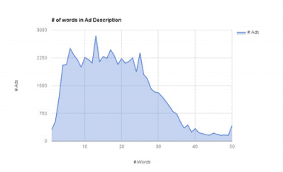 The number of words in the link description came out somewhat higher, with the most popular number being 15 words. This is still only 1 third of the word limit for the link description, so remains fairly concise. Short text is good for getting attention and not diluting your message, but for B2B companies the customer may be looking for more information and thus somewhat more than 15 words may be advisable.