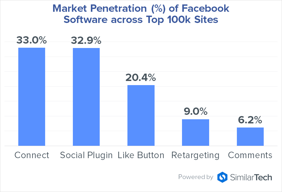 The results of the new study from SimilarTech shows the scale of Facebook operation beyond its own domain, with insights on the platform's reach and exposure through the use of Facebook technologies, giving Facebook its competitive edge on audience data and referral traffic to its site.