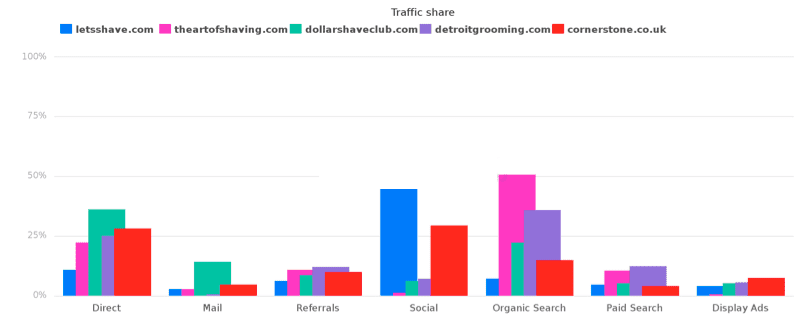 All types of traffic generation techniques are in play here and the sector is highly competitive. Even mail campaigns are at a high (even 5% for mail campaigns is considered high traffic). Referrals, Social Traffic, Paid Search, Display ads all are being invested in. This is a very good way to identify a developing sector and brands in their development phase. When a traffic share analysis shows that almost all 7 methods of traffic generation are being utilized at some level or the other, the industry is nascent and brands are trying to position themselves as best as they can. In this case a strong social positioning strategy can be seen clearly.