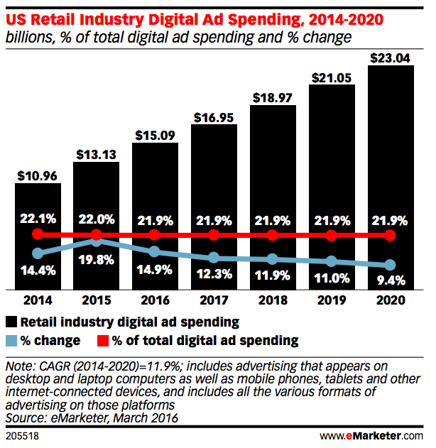 Retail Industry is set to spend a record 15 billion on digital ads this year
