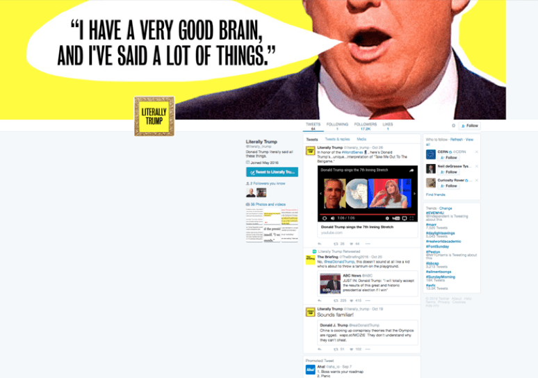 For example, Hillary Clinton’s presidential campaign built “Literally Trump”, as well as “Text Trump”, a bot that texted amusing personalised “Trumpesque” messages.