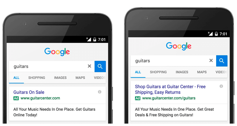 It’s been 16 years since AdWords launched, during which time the platform has remained virtually untouched. However, the mobile browsing revolution has demanded that Google rethink their whole strategy for responsive layouts, and the new expanded ads are much more flexible. This is reflected by the fact that there are no mobile-specific ad formats; ETA’s are omni-platform and will be displayed across numerous different screen sizes and layouts (although advertisers can still adjust bids dependent on device).