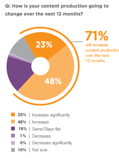 Over 600 B2B marketing professionals were asked "How is your content production going to change over the next 12 months?", a whopping 71% said they plan on increasing production, with a quarter saying they will increase production significantly.