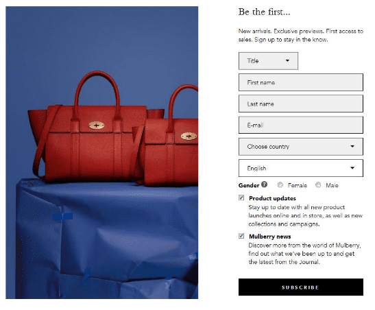 This opt-in from Mulberry is a perfect example of what you shouldn’t do.