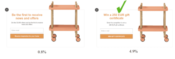 When it comes to the competition there are also two options. You can offer visitors a chance to win either a product or a gift certificate.