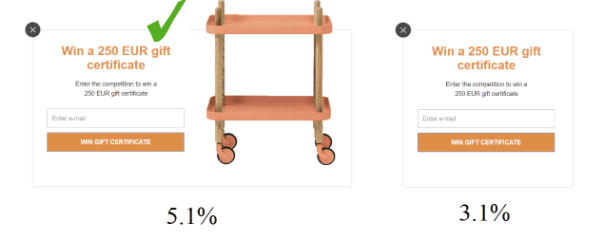The two forms are completely identical except for the fact that one has an image and the other one doesn’t. The one without an image had a conversion rate of 3,1% while the one with the image had a conversion rate of 5,1%. This is an increase of 64,5% just by adding an image.