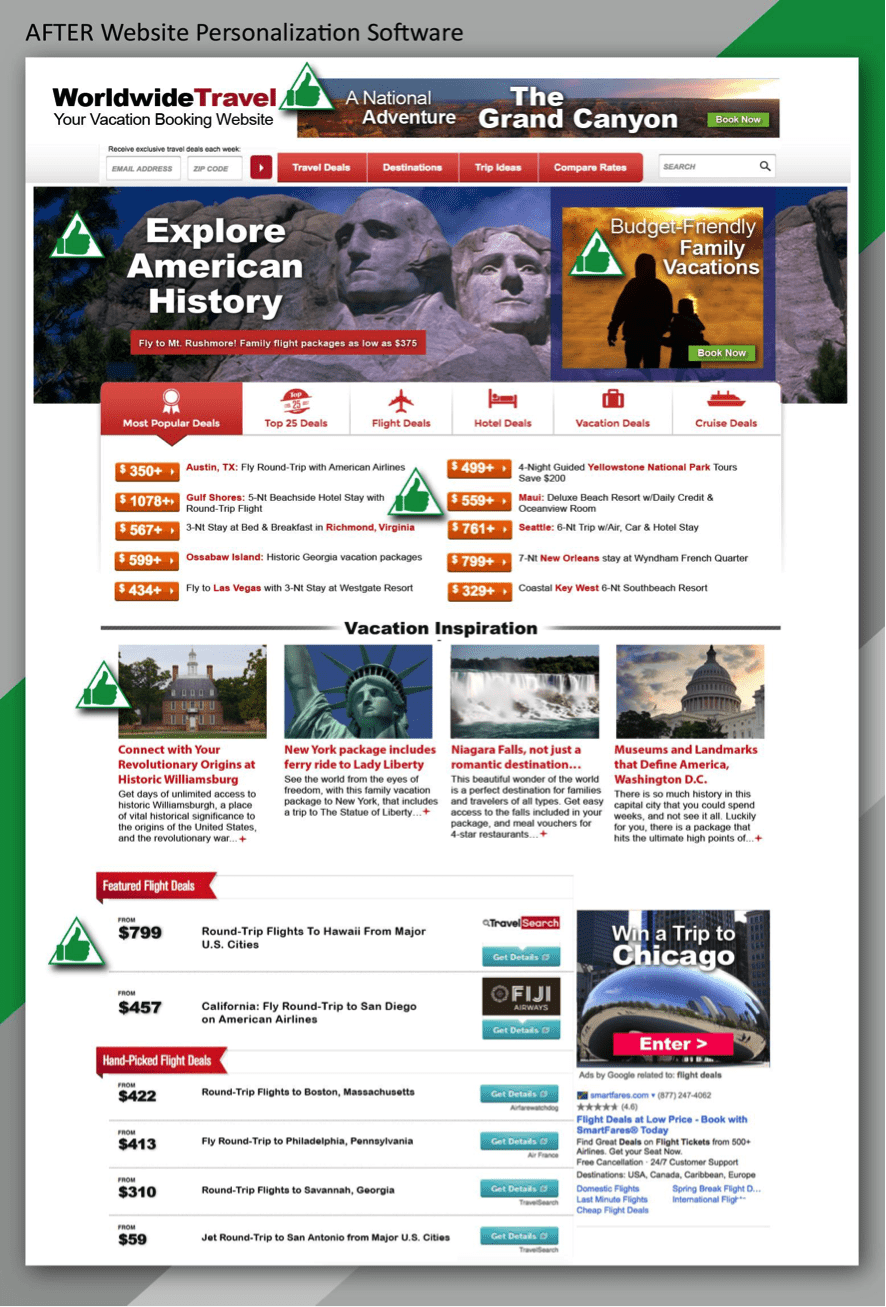 How much more likely do you think Fred is to buy a package through Worldwide Travel after his personalized experience, versus the generic experience without personalization? How much more do you think Fred feels like Worldwide Travel knows him, and is going the extra mile to meet his needs?
