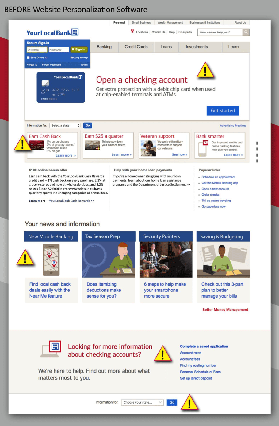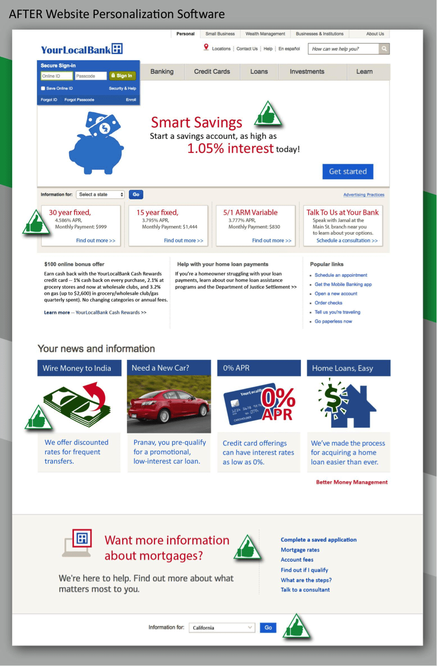 How much more likely do you think Pranav is to upgrade accounts, purchase loans and mortgages, or wire money more often, after personalization? How much faster will YLB reach their ROI goals for their online marketing with personalization in place?