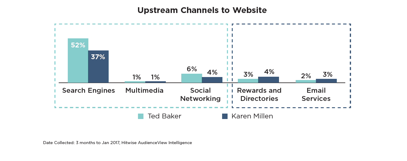 Search engines drive the highest proportion of visitors to fashion brands. Connexity, the e-commerce & consumer analytics company looked at the channels which drive the most traffic to two high fashion brands Ted Baker and Karen Millen.