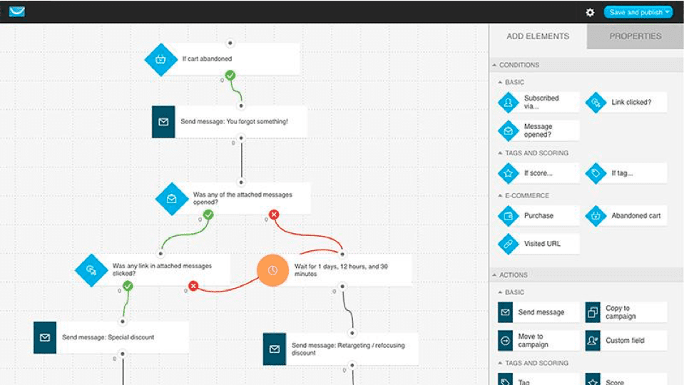 A practical example is an ecommerce store that uses Marketing Automation to track and analyze user behavior on the website and then creates an email workflow with conditions, filters and triggers to re-initiate relations via email (learn about using best practices for cart abandonment emails).