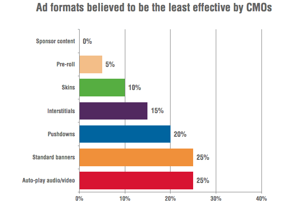 Auto-play video and banner ads are seen to be least effective digital formats by global CMOs