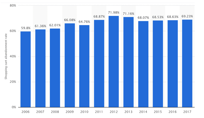 Online shopping cart abandonment rate worldwide from 2006 to 2017, Statista.