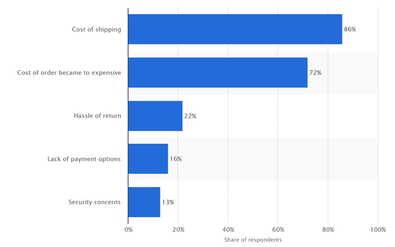According to Statista, the cost of shipping is the top reason for cart abandonment.