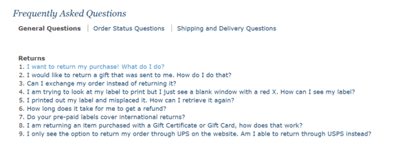 First, it provides extensive return information on the FAQ page: