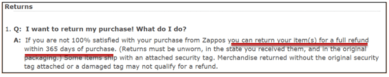 Zappos is known for being the star of return policies.