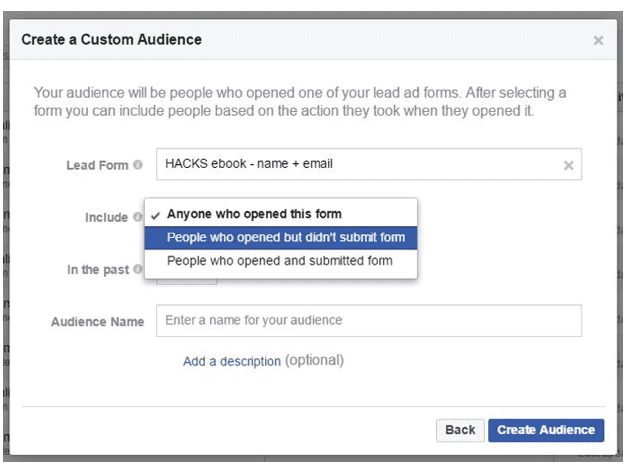 This tool is also configured to build Custom Audiences of people who opened or completed the form, so you can run retargeting campaigns for those who did not finish the subscription process and reach them again.
