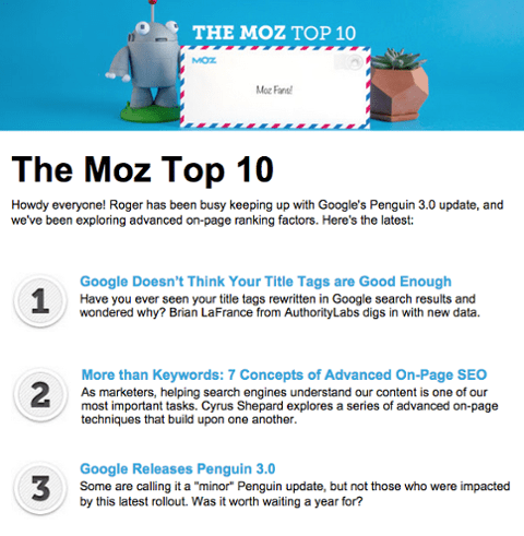 For instance, Moz’ curates top 10 lists that cover SEO essentials.