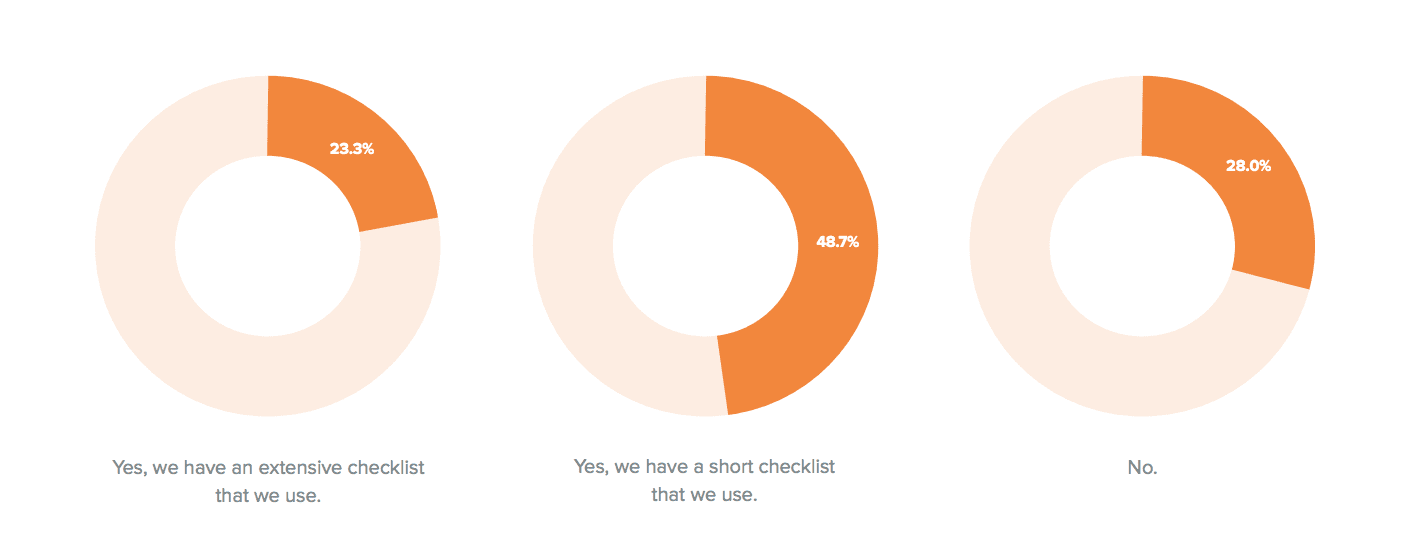 Thankfully there are 23.3% who do have an extensive checklist. But worryingly they are the lowest scoring in the chart.