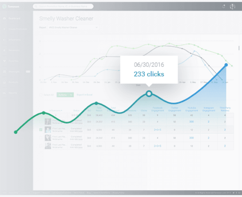 Tomoson also tracks campaign analytics for you, so you can see clicks, engagement, and even conversions for your campaigns.
