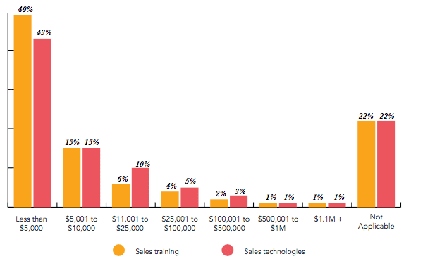 Investment in your sales team is important in order to help enhance their ability to source top quality leads that convert - yet almost half (49%) of respondents said their company was going to spend less than $5,000 dollars for sales training and 43% of sales technology.