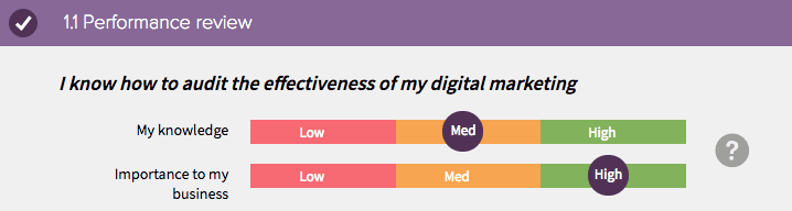 The hope of this new tool is that our users will be able to grade themselves honestly so that we can give recommendations of guides, templates, and quick-wins that will help improve knowledge and skills.
