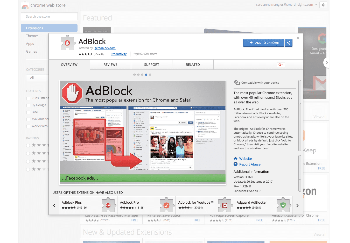 Such AdBlockers stop advertisements popping up on YouTube, Facebook and elsewhere on the web.