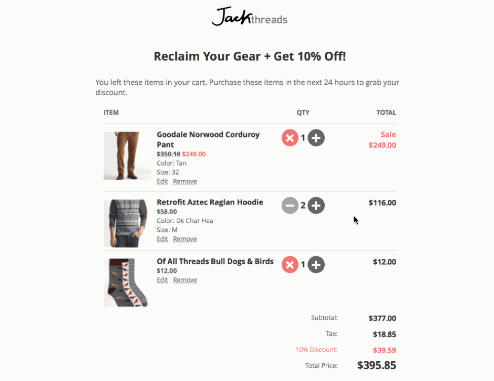 One of the most promising interactive email types is the eCommerce shopping cart. Today businesses send an email to customers where they have to click on a product of interest which opens a browser window for them to be able to make a purchase. Interactive eCommerce emails keeps the entire shopping and checkout process native to the email client. By using email automation software that integrates with shopping carts like Shopify and Magento, businesses can use a customer's purchase history to present products that are similar to past purchases. Marrying this automation practice with native interactive email shopping carts will allow for customers to purchase products they have interest in without having to leave the email client.