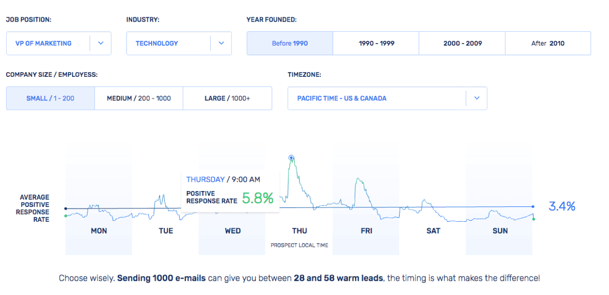 Consider how Growbots' email marketing platform optimizes send times based on engagement and the peak activity of email subscribers based on data from over one million cold campaigns.