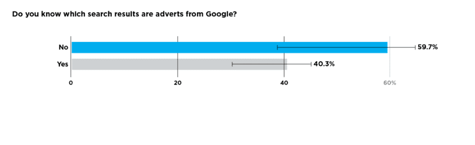 Yet it would seem that the technology doesn’t result in a particularly deep understanding of it. Of those surveyed, a surprising 60% of respondents said they don’t know the difference between Google sponsored ads and organic results - a higher than expected figure considering the regulation where paid-for listings must be marked accordingly.