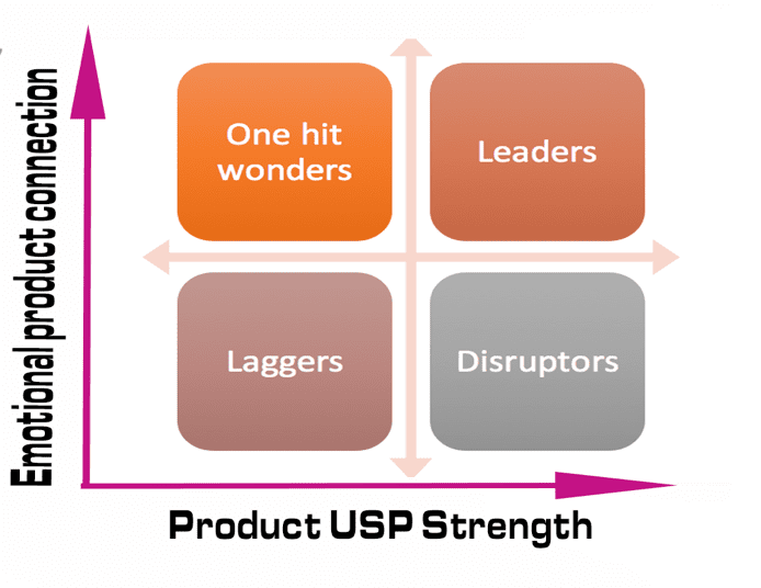 The frailer your emotional product connection, the greater the need to promote its points of differences (traditionally – USPs) and conversely, the stronger the emotional connection, the less the urgency to highlight product points of differences or USPs.