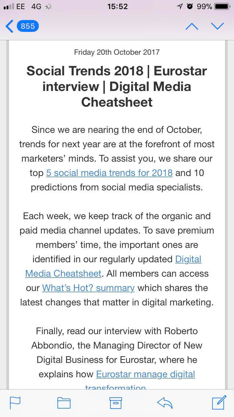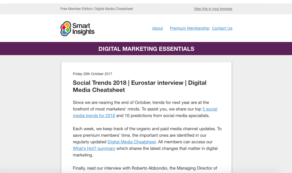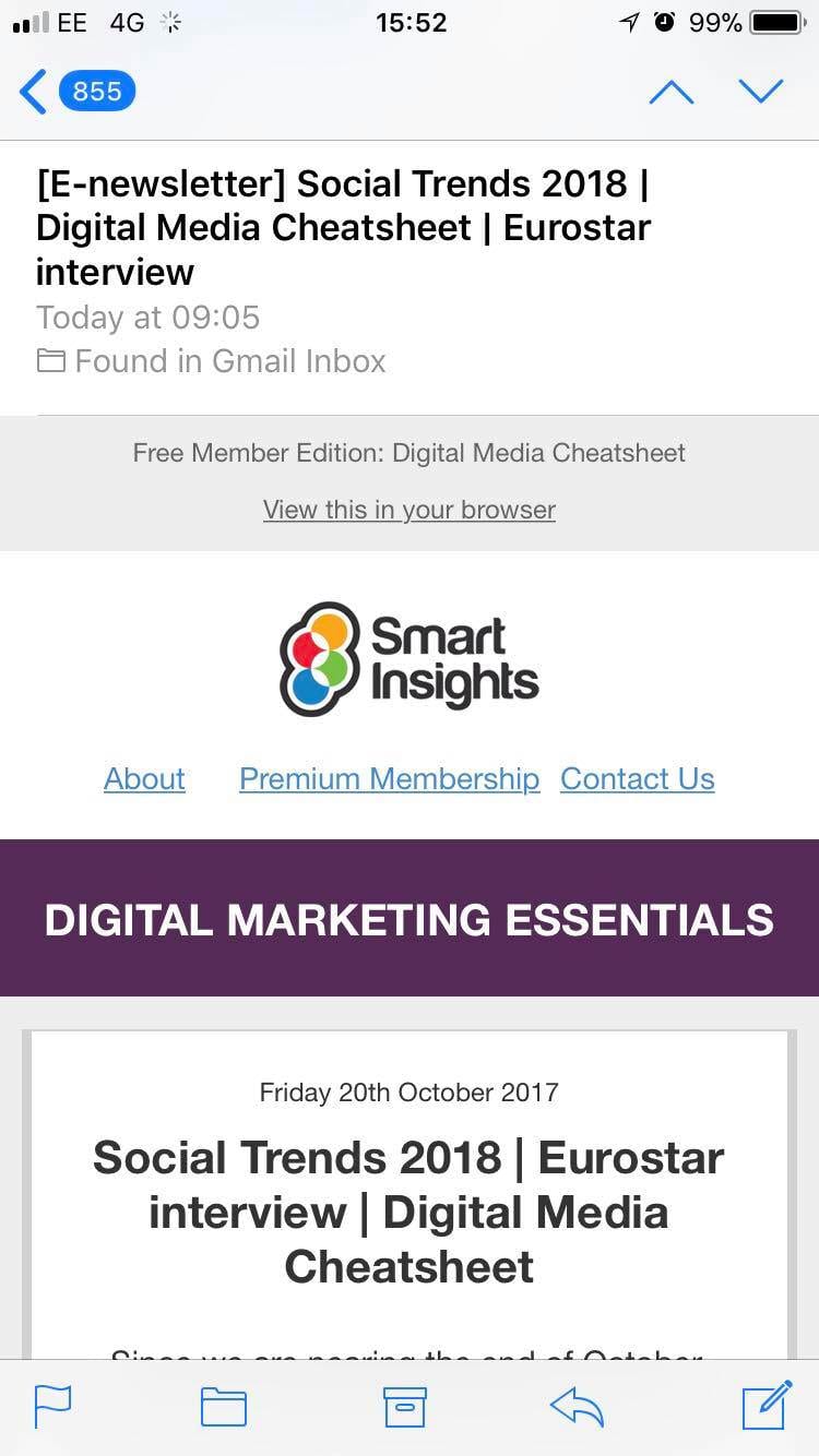 Take a look at Smart Insights' member enewsletter sent out bi-weekly on desktop and how this is optimized for mobile.