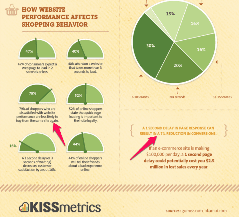 What’s worse is that for every delay of just one second in your load time you take a 7% hit in your conversation rates because visitors start bailing.