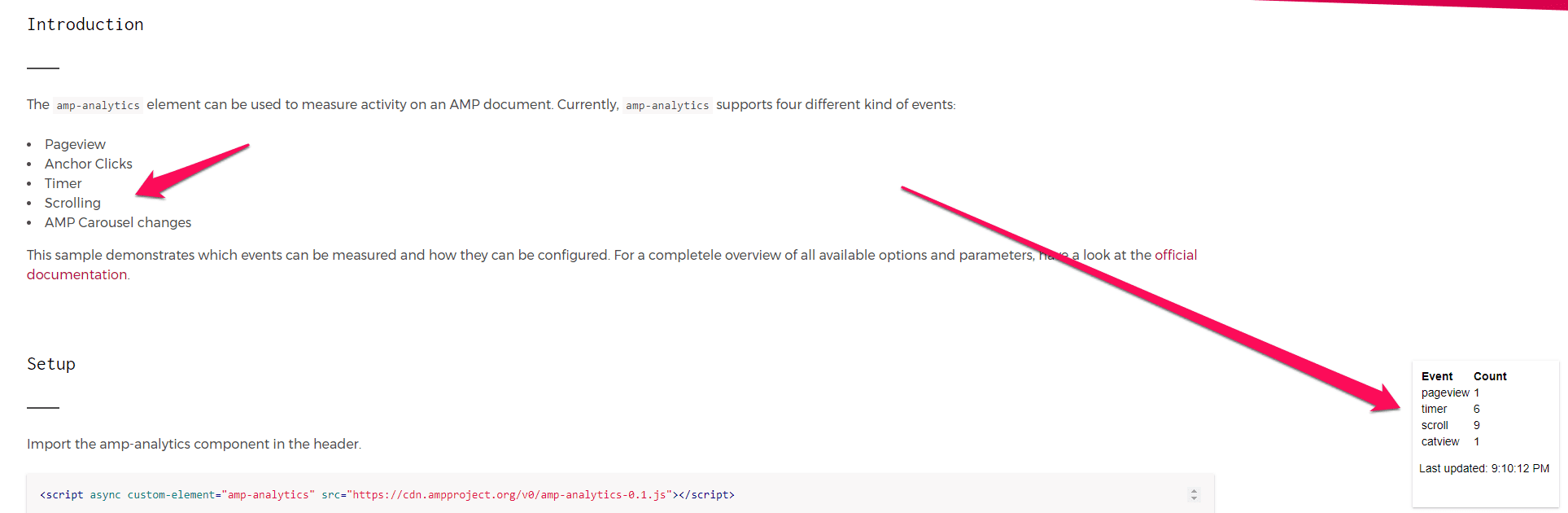 - The amp-analytics extended component is the more in-depth analytics you might be more familiar with but requires a little setup to complete. It has built-in support for Google Analytics though for easy reporting once you have it in place. This is the best approach to track and measure user behavior and the performance of your content to continue improving the user experience.