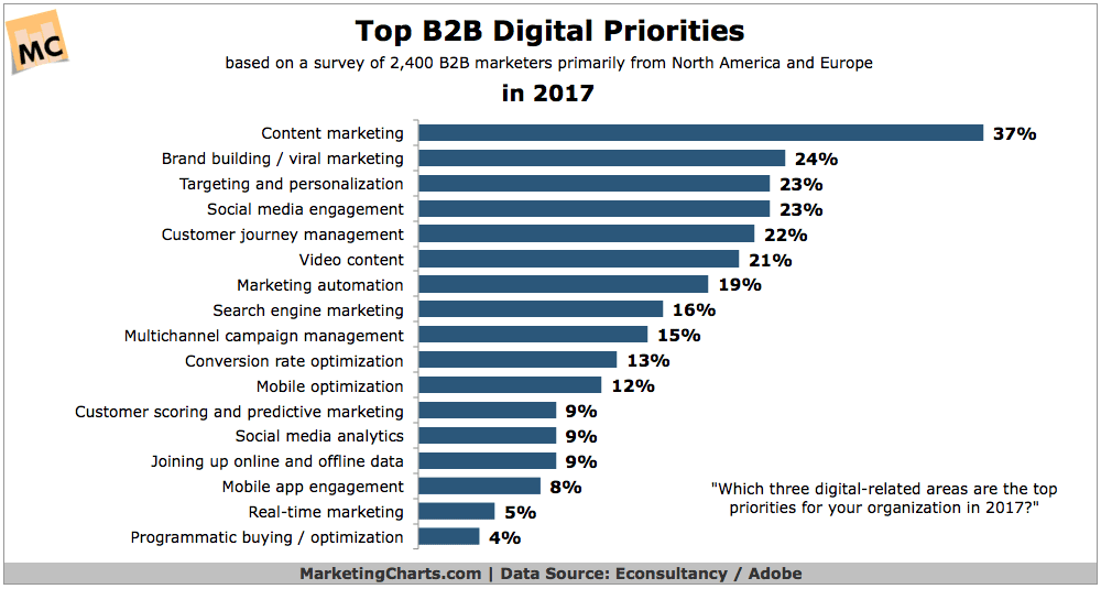 This is a shock, considering the below recent survey from Econsultancy/Adobe suggests that Content Marketing is the key priority for B2B companies in 2017: