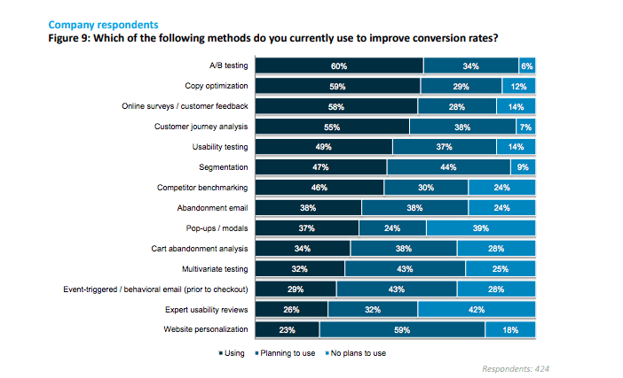 Chart of the day: AB testing is the most popular method of improving conversion rate optimization (CRO) - personalization is the least used technique