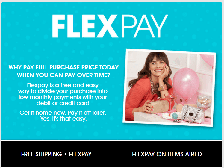 Taking a leaf out of HSN’s book, you can give shoppers the option of buying something now and paying for it later: