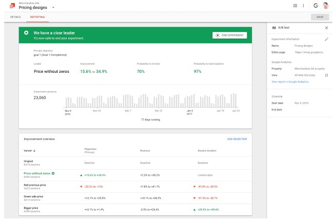 The tool also crunches the numbers for you to make it clear which tests are winning, which is great if you don't have a good grasp of statistics so would struggle to work what passes the threshold for a test to be statistically significant.