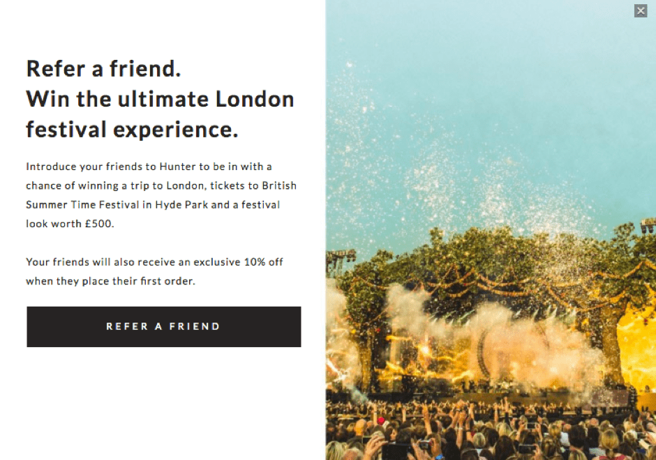 A great tactic used for trend-setting brands is to offer the chance to be part of an exclusive event in addition, or instead of a money off reward. This ties into an increasing trend to value experiences over possessions. This can be a useful approach for luxury brands which might frown upon discounting.